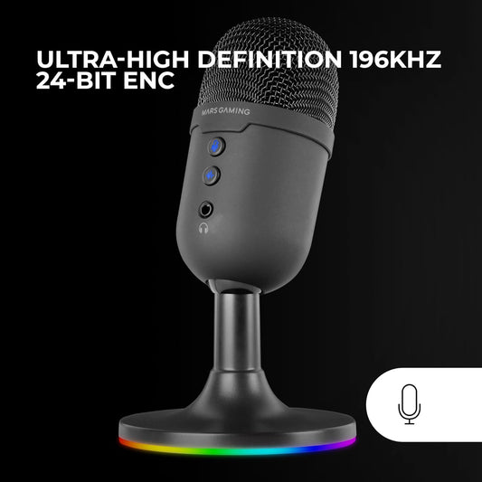 Mars Gaming MMIC-CX, Micrófono Profesional,Compacto ARGB, Sonido De Alta Definición, Cancelación Ruido ENC, Botón Mute, USB Plug&Play, Jack 3.5Mm