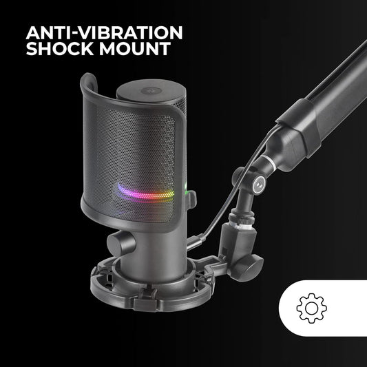 Mars Gaming MMIC-SC, Micrófono De Estudio Profesional, Diseño De Alta Gama ARGB, Alta Definición 192Khz 24-Bit, Brazo Mecánico Omnidireccional, Rueda De Control, Filtro Pop De Malla Metálica